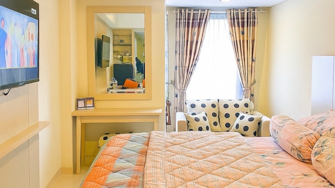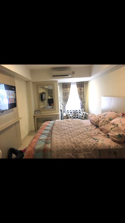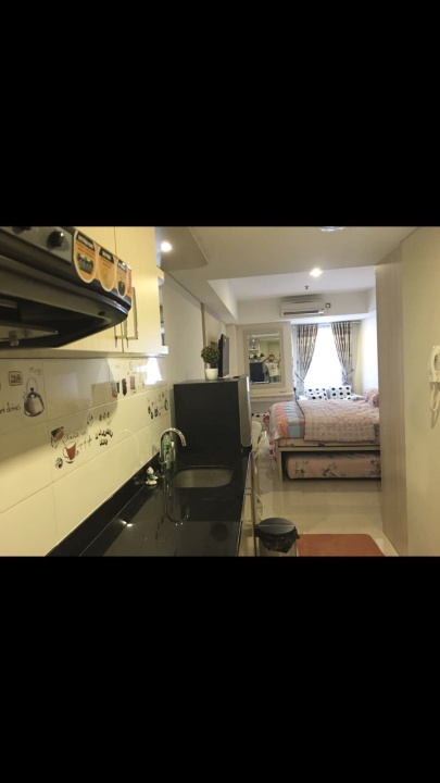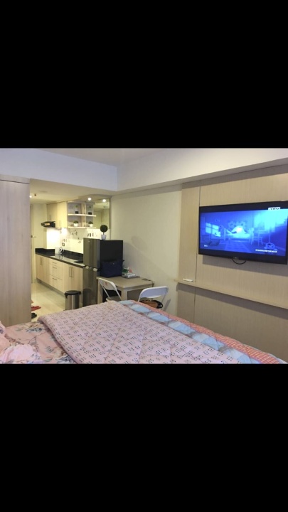 Luas 33m persegi, tipe studio,ac,almari es , tv , dapur kering + penyedot asap,meja , sova, tempat tidur set , lantai 9 , parkir mudah