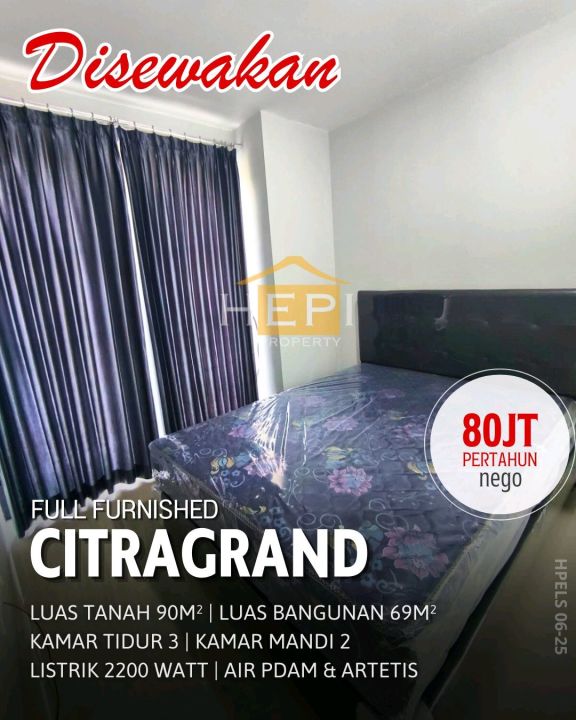 Sewa rumah minimalis di Citragrand, Semarang, LT 90m², LB 69m², 3 KT, harga ekonomis 80 Juta /tahun. Ideal untuk keluarga kecil atau pasangan baru menikah.