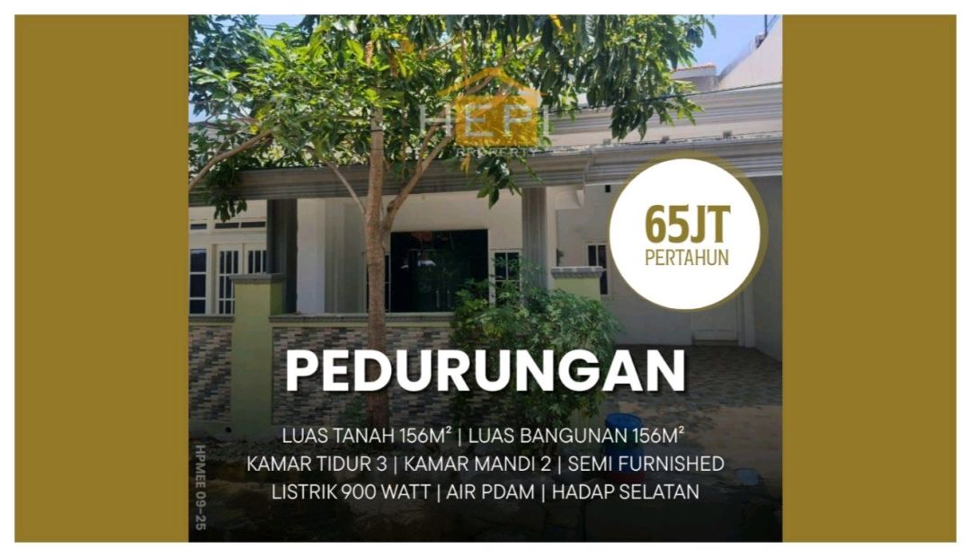 Kontrakan sederhana dan nyaman di Pedurungan, Semarang. Terdiri dari KT & 3 KM, LT/LB: 156/150m². Harga ekonomis 65 Juta /tahun. Dekat fasilitas umum.