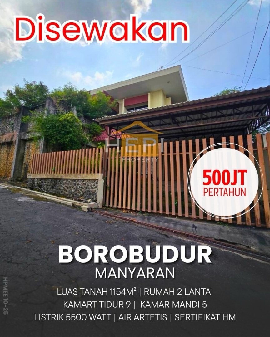 Rumah disewakan murah di Manyaran, Semarang. Luas tanah 1154m², LB 500m², 9 kamar tidur, 2 kamar mandi. Harga sewa hemat: 500 Juta /tahun. Cocok untuk keluarga kecil.