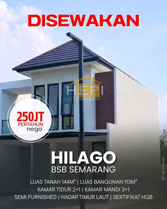 Disewakan rumah di Hilago BSB City Mijen, Semarang Barat