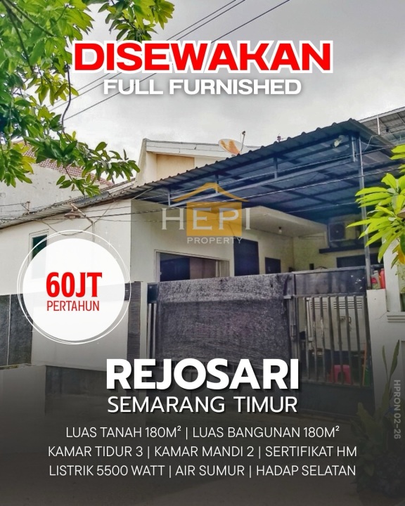 Sewa rumah minimalis di Semarang Timur, Semarang, LT 180m², LB 180m², 3 KT, harga ekonomis 60 Juta /tahun. Ideal untuk keluarga kecil atau pasangan baru menikah.