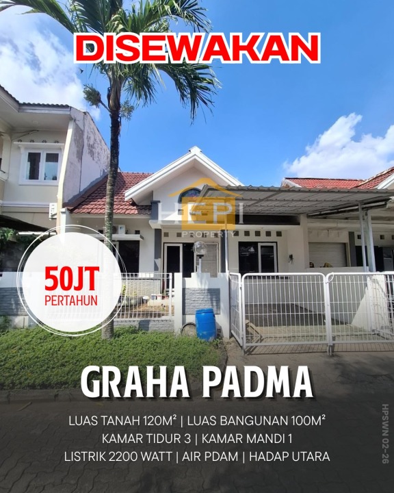Kontrakan minimalis dan nyaman di Graha Padma, Semarang. Terdiri dari 3 KT & 1 KM, LT/LB: 120/100m². Harga ekonomis 50 Juta /tahun. Dekat fasilitas umum.