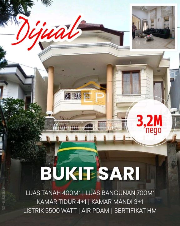 Dijual rumah mewah di kawasan elit Bukit Sari, Semarang. Dengan desain modern, LT 400m², LB 700m², terdiri dari 4 KT & 3 KM. Harga premium: 3,2 Miliar. Lingkungan prestisius.