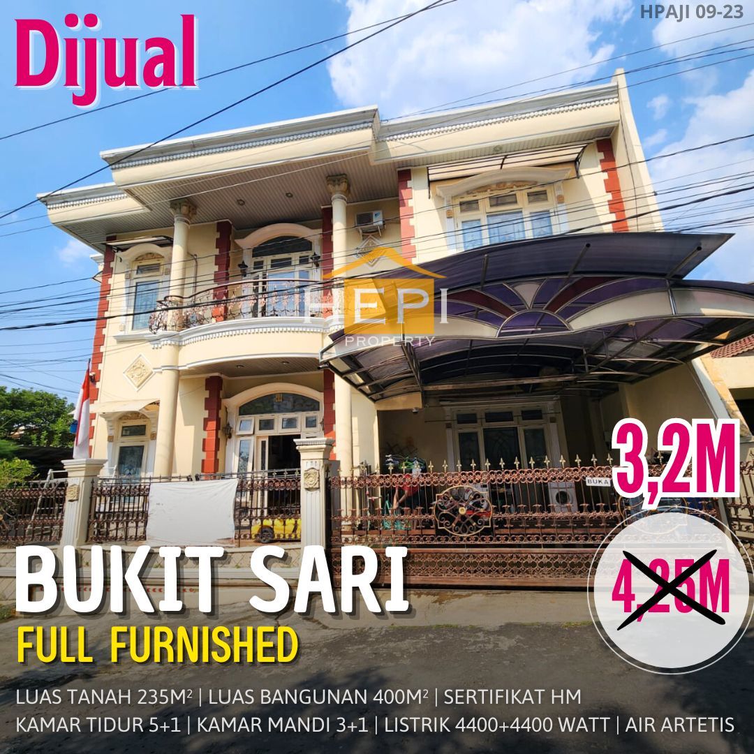 Penawaran terbatas rumah luxury di Bukit Sari, Semarang. Desain elegan dengan LT/LB: 235/400m², 5 KT & 3 KM. Harga spesial: 3,2 Miliar. Cocok untuk hunian atau investasi.