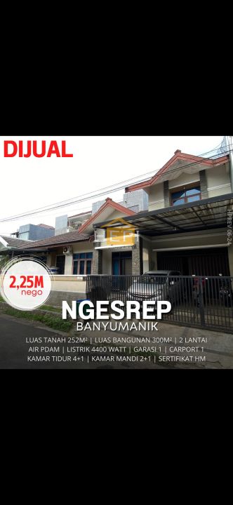 Rumah siap huni di kawasan Banyumanik, Semarang. Luas tanah 252m² dan luas bangunan 300m², dilengkapi 4 KT & 2 KM. Harga mulai 2,25 Miliar. Proses pembelian mudah.