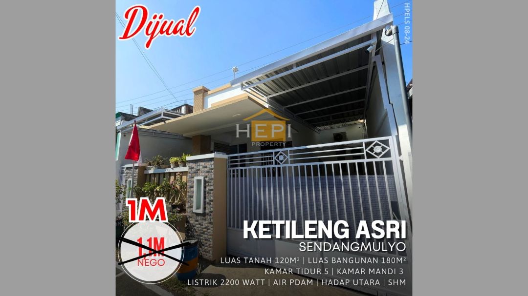 Tersedia rumah di Kedungmundu, Semarang. Hunian modern dengan 5 kamar tidur dan 3 kamar mandi. LT 120m², LB 180m². Harga kompetitif 1 Miliar. Lokasi strategis.