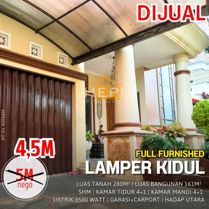 Rumah luxury siap huni di Lamper, Semarang. Hunian elit dengan 4 kamar tidur dan 4 kamar mandi, LT 280m², LB 161m². Harga eksklusif: 4,5 Miliar. Fasilitas lengkap.