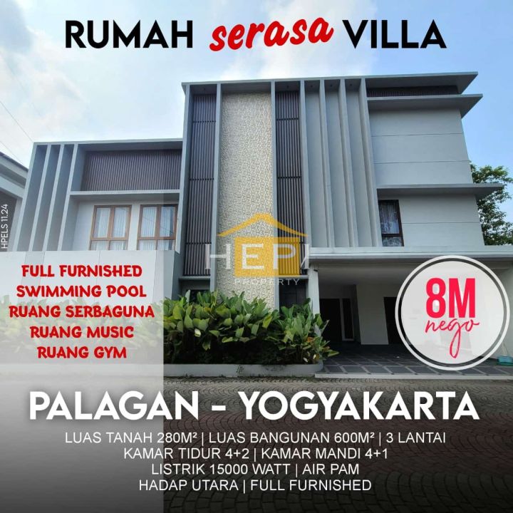 Dijual rumah eksklusif di kawasan elit Sleman, Yogyakarta. Dengan desain elegan, LT 280m², LB 600m², terdiri dari 4 KT & 4 KM. Harga premium: 8 Miliar. Lingkungan prestisius.