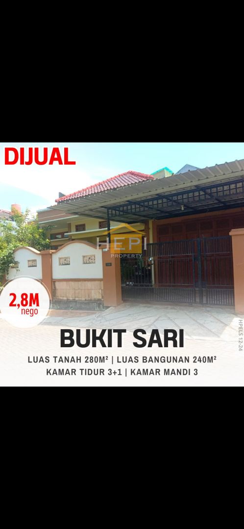 Rumah elit siap tinggal kawasan Bukit Sari dengan luas lahan 280 m². Mempunyai 4 kamar tidur dan 3 kamar mandi, serta .