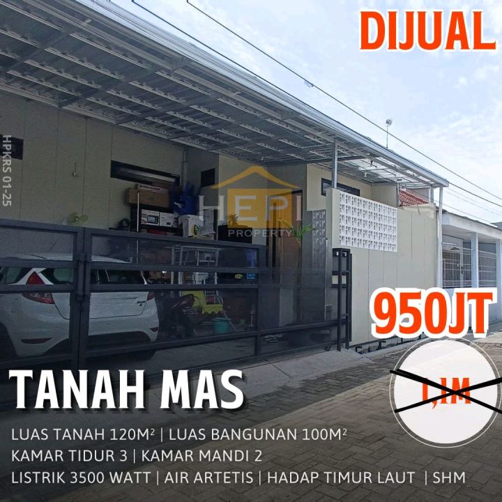 Miliki rumah di Tanah Mas, Semarang. Memiliki 3 kamar tidur, 2 kamar mandi, luas tanah 120m², luas bangunan 100m². Harga spesial: 950 Juta. Lingkungan nyaman.