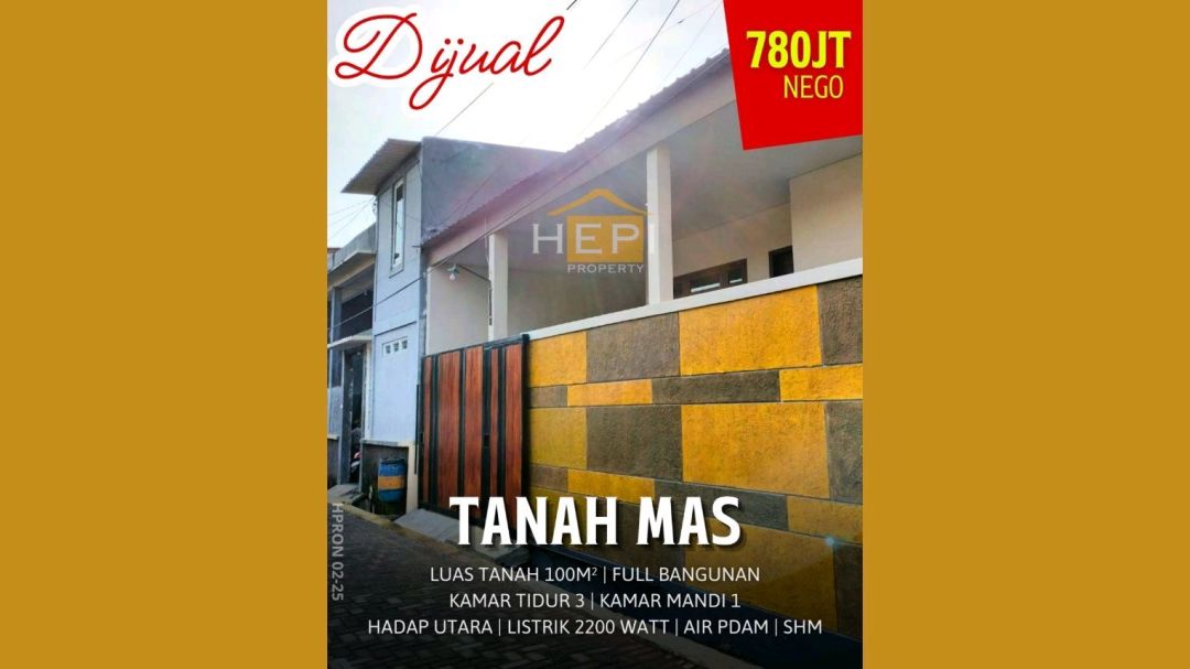 Promo terbatas rumah keluarga di Tanah Mas, Semarang. Luas tanah 100m² dengan bangunan 100m², terdiri dari 3 KT & 1 KM. Harga terbaik di kelasnya: 750 Juta. Lingkungan asri dan aman.