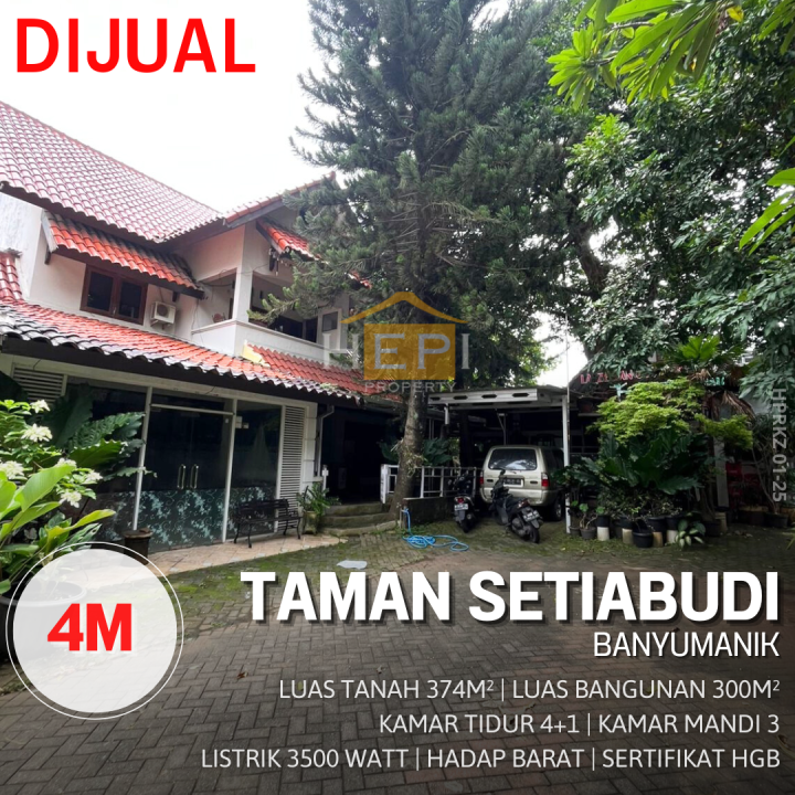 Segera miliki rumah berkelas di Banyumanik, Semarang. Desain elegan dengan LT/LB: 374/300m², 5 KT & 3 KM. Harga spesial: 4 Miliar. Cocok untuk hunian atau investasi.