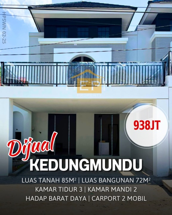 Tersedia rumah di Kedungmundu, Semarang. Hunian modern dengan 3 kamar tidur dan 2 kamar mandi. LT 85m², LB 72m². Harga kompetitif 938 Juta. Akses mudah ke fasilitas umum.