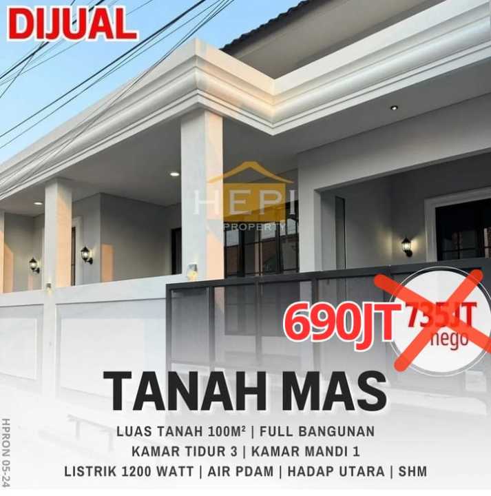 Segera miliki rumah keluarga di Tanah Mas, Semarang. Luas tanah 100m² dengan bangunan 100m², terdiri dari 3 KT & 1 KM. Harga terbaik di kelasnya: 690 Juta. Lingkungan nyaman.