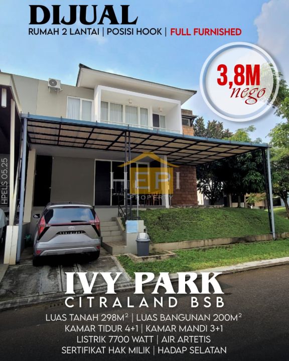 Rumah 2 Lantai Posisi Hook Full Furnished Di Ivy Park Citraland Bsb