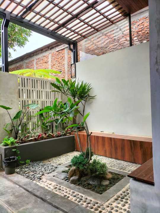 - rumah pojok, depan rumah jadi taman
