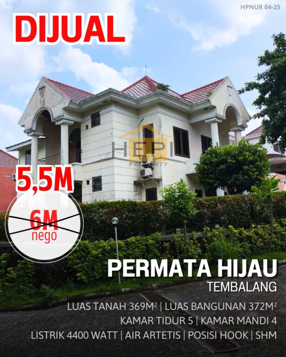 Dijual rumah mewah di kawasan elit Banyumanik, Semarang. Dengan desain modern, LT 369m², LB 372m², terdiri dari 5 KT & 4 KM. Harga premium: 5,5 Miliar. Akses mudah.