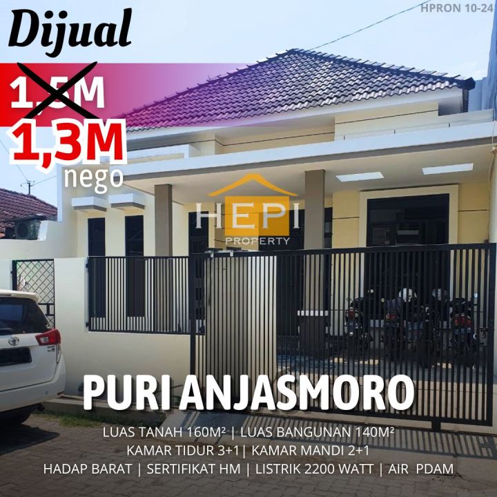 Tersedia rumah di Puri Anjasmoro, Semarang. Hunian modern dengan 4 kamar tidur dan 3 kamar mandi. LT 160m², LB 140m². Harga kompetitif 1,3 Miliar. Lokasi strategis.