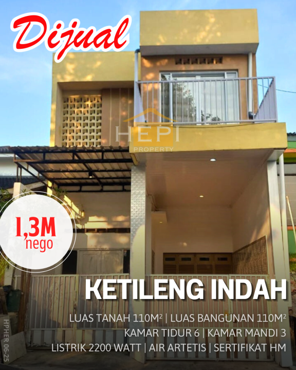 Segera miliki rumah keluarga di Ketileng, Semarang. Luas tanah 110m² dengan bangunan 110m², terdiri dari 6 KT & 3 KM. Harga terbaik di kelasnya: 1,3 Miliar. Lingkungan nyaman.
