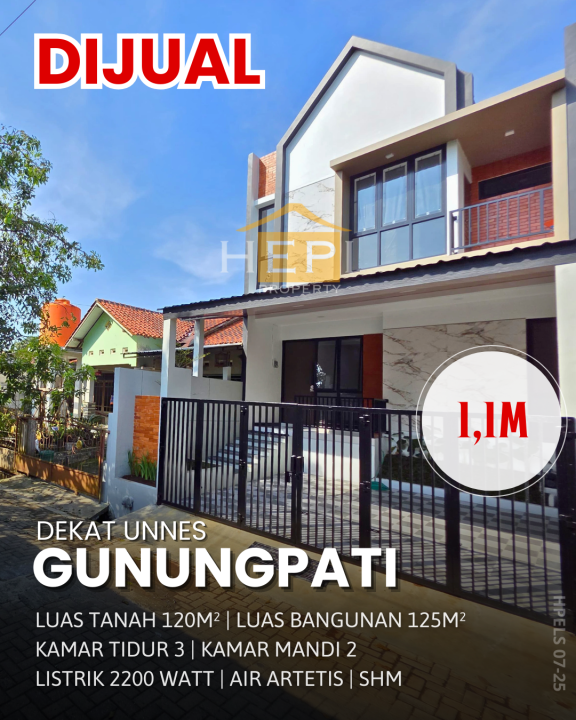 Segera miliki rumah idaman di Gunung Pati, Semarang. Luas tanah 120m² dengan bangunan 125m², terdiri dari 3 KT & 2 KM. Harga terbaik di kelasnya: 1,1 Miliar. Lingkungan nyaman.