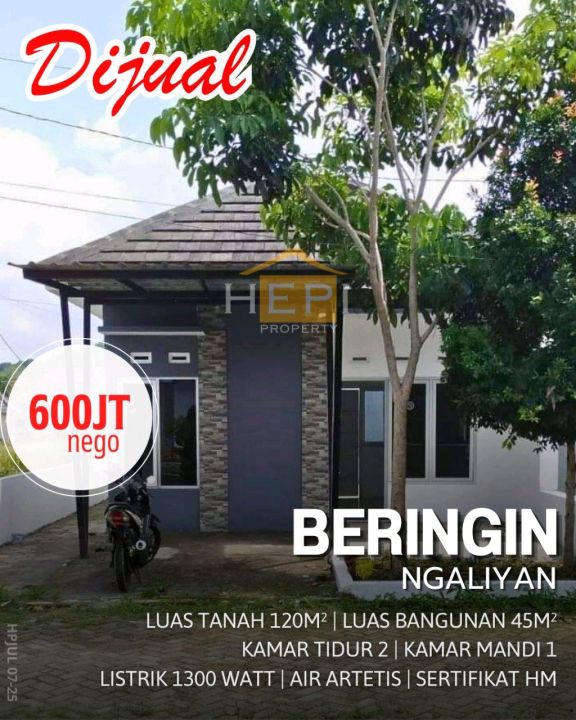Penawaran menarik rumah di Ngaliyan, Semarang. Memiliki 2 kamar tidur, 1 kamar mandi, luas tanah 120m², luas bangunan 45m². Harga spesial: 600 Juta. Lingkungan nyaman.