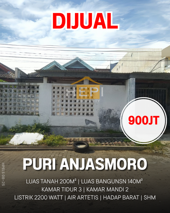 Tersedia rumah mewah di kawasan elit Puri Anjasmoro, Semarang. Dengan desain elegan, LT 389m², LB 250m², terdiri dari 3 KT & 2 KM. Harga premium: 2,8 Miliar. Akses mudah.