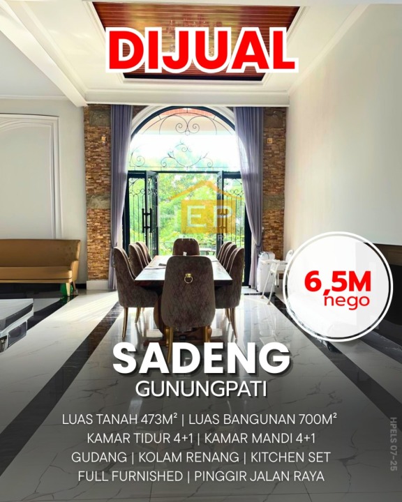 Penawaran istimewa memiliki rumah elit di Gunung Pati, Semarang. Luas tanah 473m², bangunan 700m², 4 KT & 4 KM. Harga terbaik di kelasnya: 6,5 Miliar. Dekat pusat kota dan fasilitas premium.