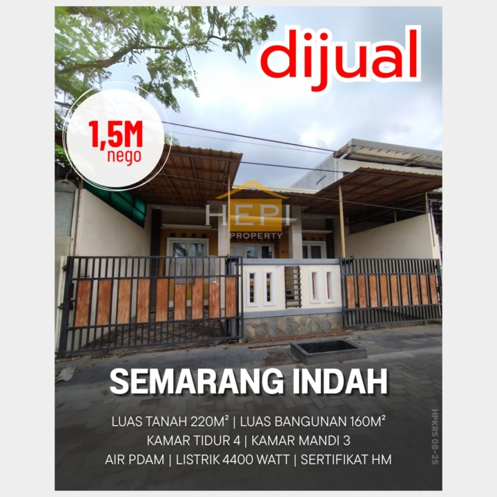 Rumah keluarga di lokasi strategis Semarang Barat, Semarang. Dengan 4 KT dan 3 KM, LT 220m², LB 160m². Harga terbaik 1,5 Miliar. Dekat fasilitas umum.
