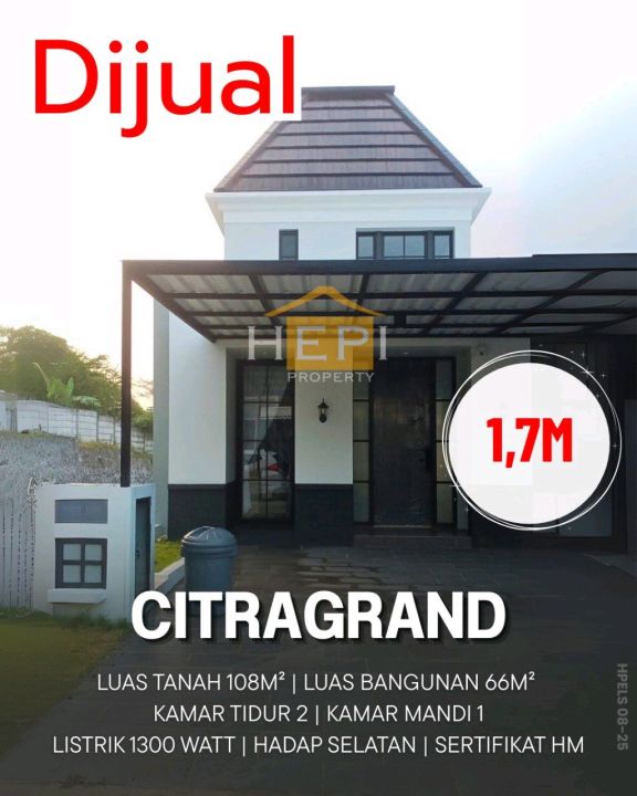 Dijual rumah di Citragrand, Semarang. Hunian modern dengan 2 kamar tidur dan 1 kamar mandi. LT 108m², LB 66m². Harga terjangkau 1,7 Miliar. Lokasi strategis.
