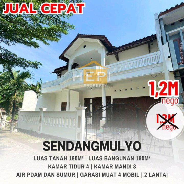 Tersedia rumah di Sendangmulyo, Semarang. Hunian nyaman dengan 4 kamar tidur dan 3 kamar mandi. LT 180m², LB 190m². Harga terjangkau 1,2 Miliar. Akses mudah ke fasilitas umum.