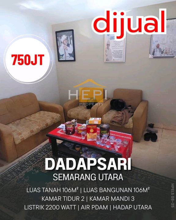 Rumah minimalis di kawasan Semarang Utara, Semarang. Luas tanah 106m² dan luas bangunan 106m², dilengkapi 2 KT & 3 KM. Harga mulai 750 Juta. Proses pembelian mudah.