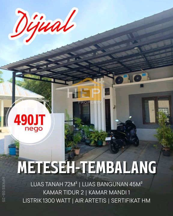 Jual cepat rumah sederhana di Meteseh, Semarang. Hunian nyaman dengan 2 kamar tidur, 1 kamar mandi, luas tanah 72m², bangunan 45m². Harga ekonomis: 490 Juta.