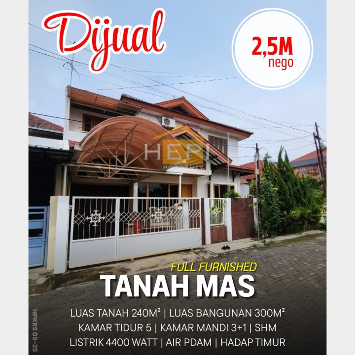 Penawaran menarik rumah di Tanah Mas, Semarang. Memiliki 5 kamar tidur, 4 kamar mandi, luas tanah 240m², luas bangunan 300m². Harga spesial: 2,5 Miliar. Lingkungan aman.