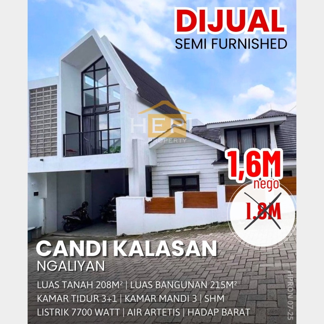 Promo terbatas rumah idaman di Ngaliyan, Semarang. Luas tanah 208m² dengan bangunan 215m², terdiri dari 4 KT & 3 KM. Harga terbaik di kelasnya: 1,6 Miliar. Lingkungan nyaman.