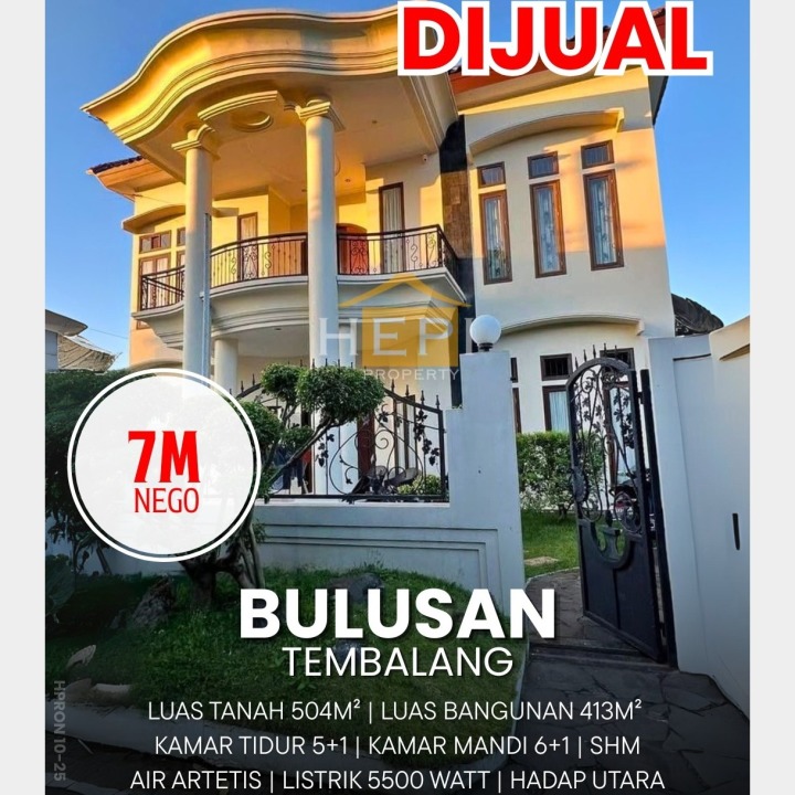 Segera miliki rumah luxury di Tembalang, Semarang. Desain elegan dengan LT/LB: 504/413m², 6 KT & 7 KM. Harga spesial: 7 Miliar. Cocok untuk hunian atau investasi.