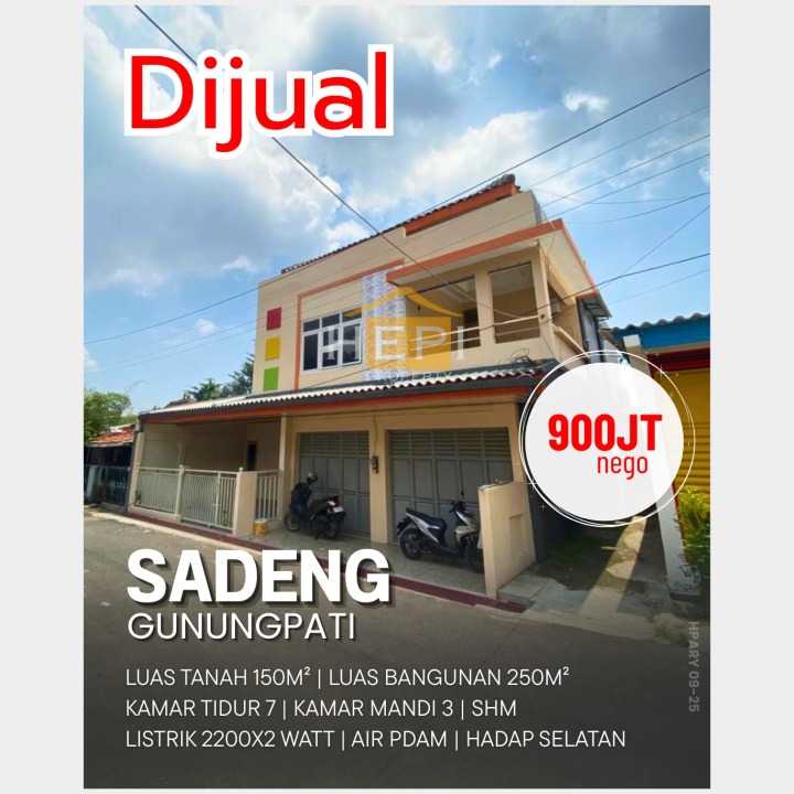 Dijual rumah di Gunung Pati, Semarang. Hunian modern dengan 7 kamar tidur dan 3 kamar mandi. LT 150m², LB 250m². Harga terjangkau 900 Juta. Akses mudah ke fasilitas umum.