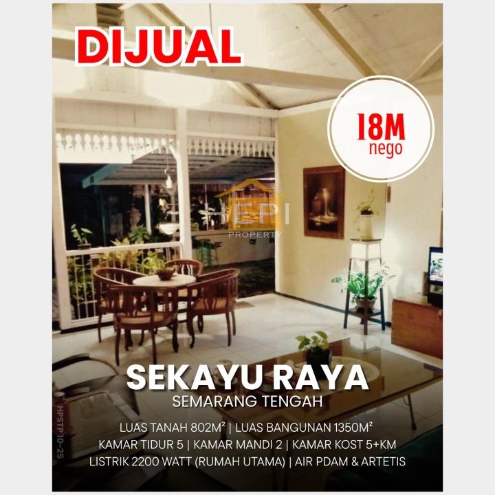 Penawaran istimewa memiliki rumah elit di Sekayu, Semarang. Luas tanah 802m², bangunan 1350m², 10 KT & 7 KM. Harga terbaik di kelasnya: 18 Miliar. Lokasi strategis.