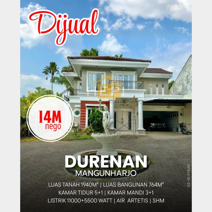 Penawaran istimewa memiliki rumah premium di Tembalang, Semarang. Luas tanah 1940m², bangunan 764m², 5 KT & 3 KM. Harga terbaik di kelasnya: 14 Miliar. Dekat pusat kota dan fasilitas premium.