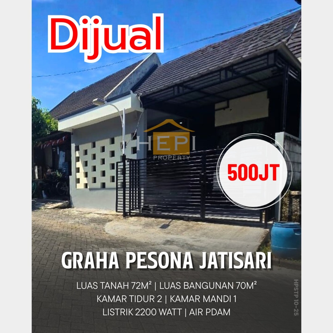 Rumah sederhana harga hemat di kawasan Jatisari, Karawang. Memiliki 2 kamar tidur dan 1 kamar mandi. Luas tanah 72m² dan bangunan 70m². Proses mudah, harga 500 Juta.