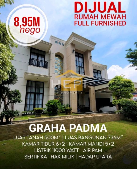 Segera miliki rumah luxury di Graha Padma, Semarang. Desain elegan dengan LT/LB: 500/736m², 6 KT & 5 KM. Harga spesial: 8,95 Miliar. Cocok untuk hunian atau investasi.