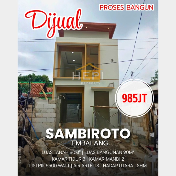 Dijual rumah di Tembalang, Semarang. Hunian modern dengan 3 kamar tidur dan 2 kamar mandi. LT 80m², LB 90m². Harga kompetitif 985 Juta. Lokasi strategis.