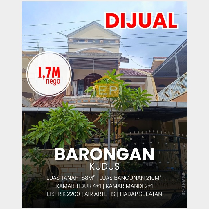 Segera miliki rumah idaman di Kota Kudus, Kabupaten Kudus. Luas tanah 168m² dengan bangunan 210m², terdiri dari 4 KT & 2 KM. Harga terbaik di kelasnya: 1,7 Miliar. Lingkungan asri dan aman.