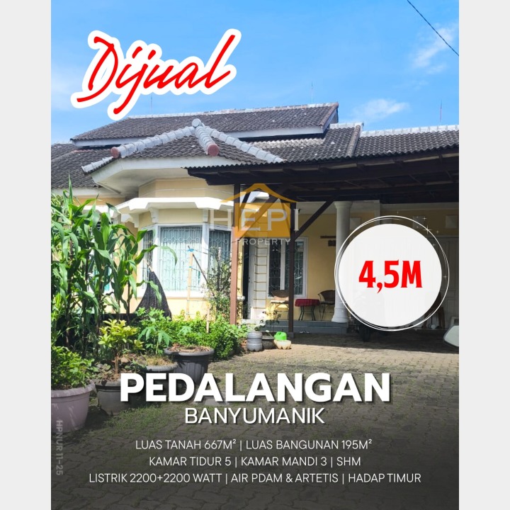Penawaran terbatas rumah luxury di Banyumanik, Semarang. Desain elegan dengan LT/LB: 667/195m², 5 KT & 3 KM. Harga spesial: 4,5 Miliar. Cocok untuk hunian atau investasi.
