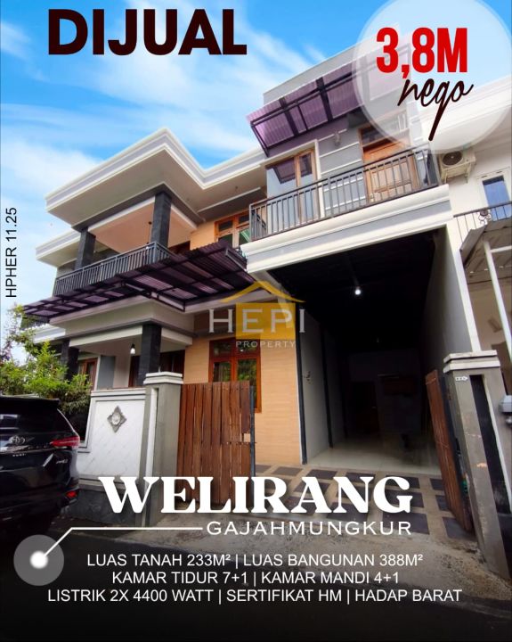Rumah luxury baru renovasi di Gajah Mungkur, Semarang. Hunian elit dengan 7 kamar tidur dan 4 kamar mandi, LT 233m², LB 388m². Harga eksklusif: 3,8 Miliar. Fasilitas sekitar lengkap.