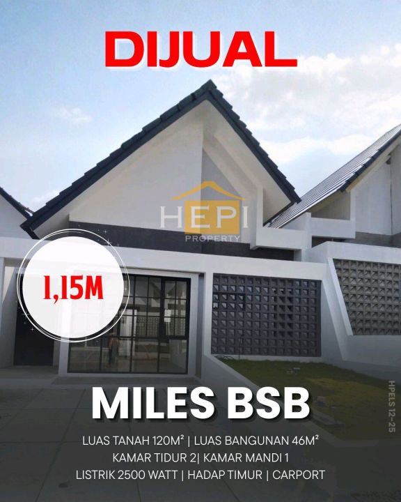 Rumah nyaman di lokasi strategis BSB City, Semarang. Punya 2 KT dan 1 KM, LT 120m², LB 46m². Harga terbaik 1,15 Miliar. Dekat fasilitas umum.