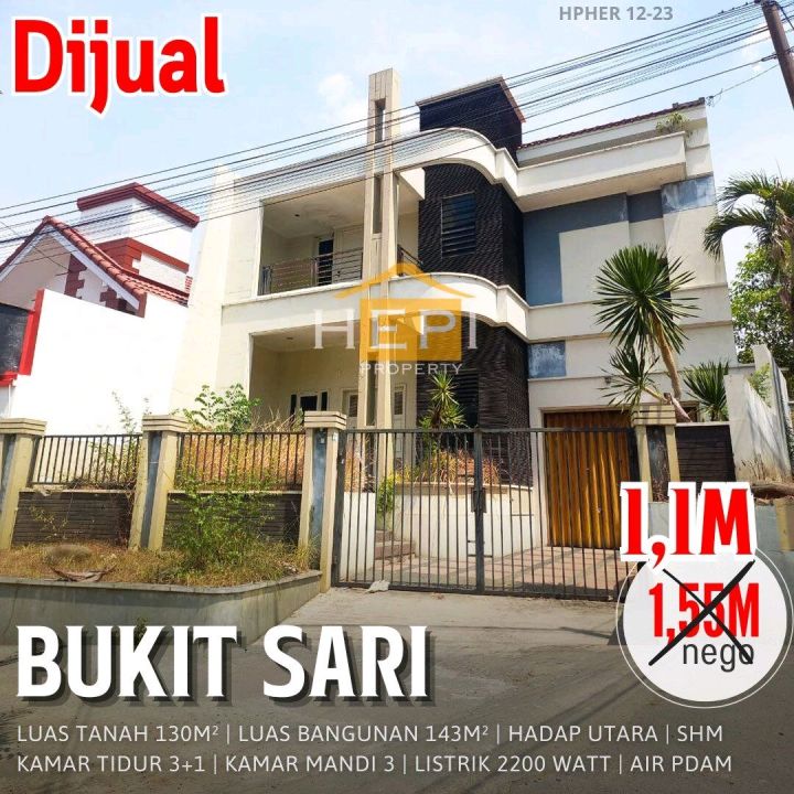 Miliki rumah di Bukit Sari, Semarang. Memiliki 3 kamar tidur, 3 kamar mandi, luas tanah 130m², luas bangunan 143m². Harga spesial: 1,1 Miliar. Lingkungan nyaman.