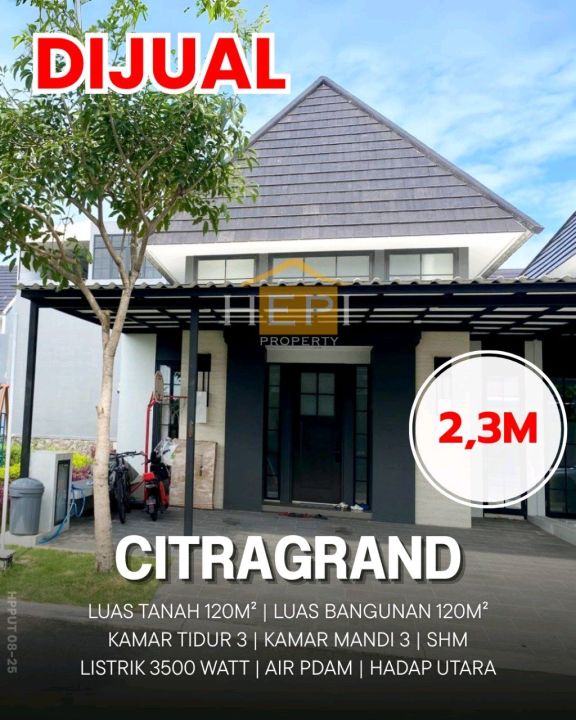 Rumah nyaman di lokasi strategis Citragrand, Semarang. Dengan 3 KT dan 3 KM, LT 120m², LB 120m². Harga terbaik 2,3 Miliar. Dekat fasilitas umum.