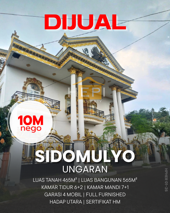 Dijual rumah eksklusif di kawasan elit Ungaran Timur, Semarang. Dengan desain elegan, LT 465m², LB 565m², terdiri dari 8 KT & 8 KM. Harga premium: 10 Miliar. Akses mudah.