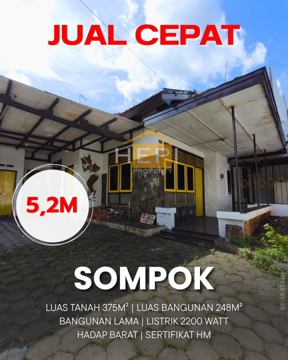 Hunian prestisius di Sompok, Semarang. Memiliki luas tanah 375m² dengan bangunan 248m², terdiri dari 1 kamar tidur & 1 kamar mandi. Harga eksklusif: 5,2 Miliar. Lingkungan privat.